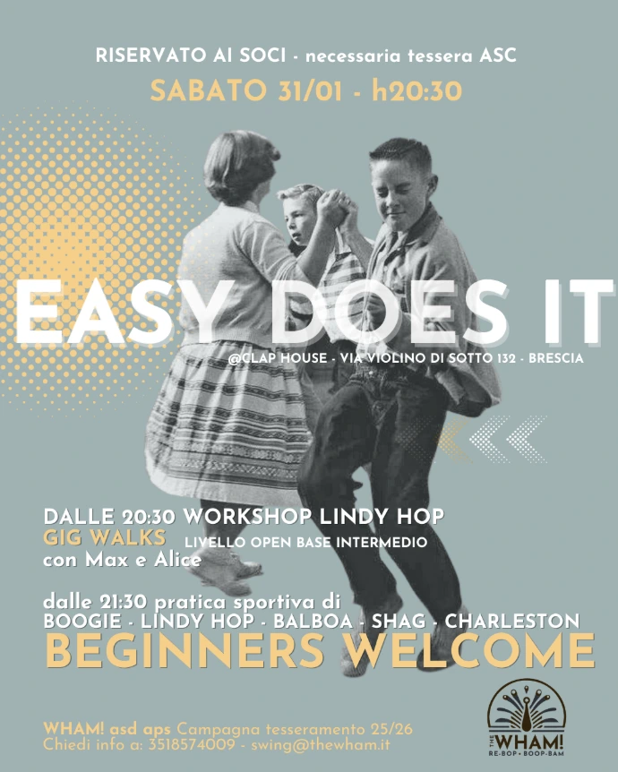 Easy Does It è la serata swing pensata per tutti, ma soprattutto per chi ha iniziato a ballare quest'anno.